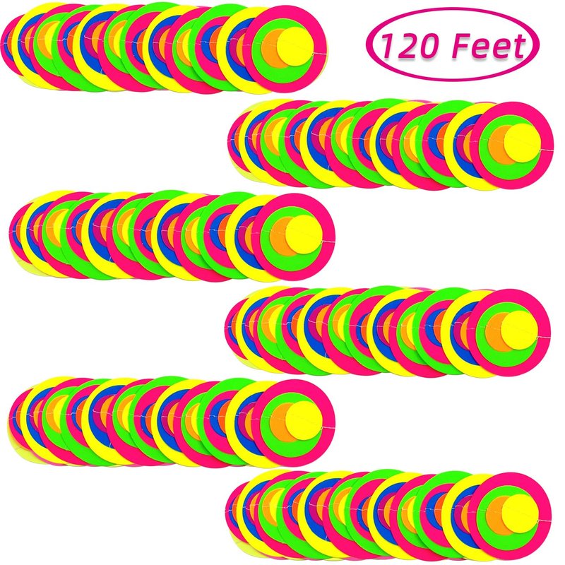 120feet Round Dot UV Neon Garland Hanging Paper Glow in The Dark Neon Glow Party Supplies and Decorations Glow in The Dark Blacklight Reactive Fluorescent Black Light Party Kit for Birthday Wedding