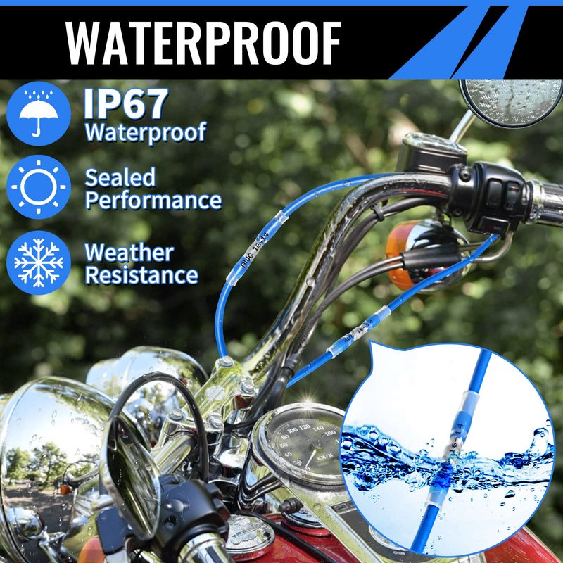 - ♥ BETTER WATERPROOF SOLUTIONS: Double wall design, Hot Melt Adhesive inside ensures wires strongly connected and prevent wires slipping from the terminal; Polyolefin outside tubing provides insulation and improves pullout strength.
