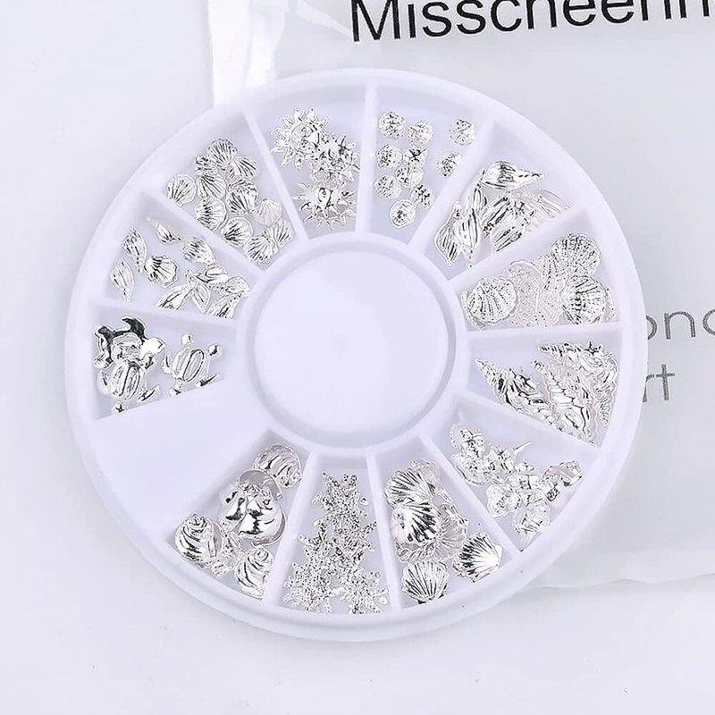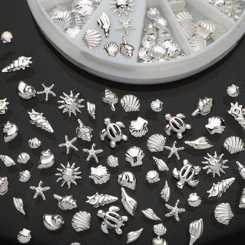 120Pcs/Pack Sliver Nail Art Decorations Mini Ocean Accessories Nail Art Rhinestones Silver Shell Conch Nail Charms Manicure Decor DIY Nail Decoration