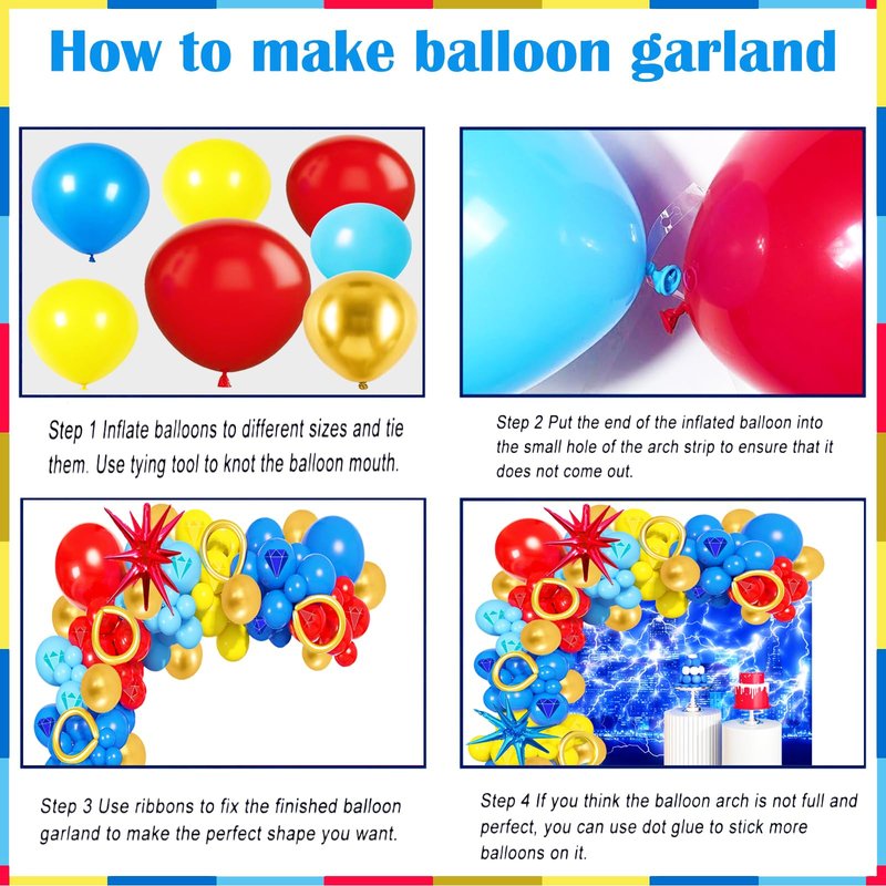 • 【Used In Variety Occasions】Coming with different size balloons, you can decorate them on the any place, adding layers to the party. for graduation, bridal shower, cartoon blue hedgeho theme birthday party, baby shower, gender reveal party, children’s day, New Year, anniversary party decorations etc. will give the party a shocking effect
