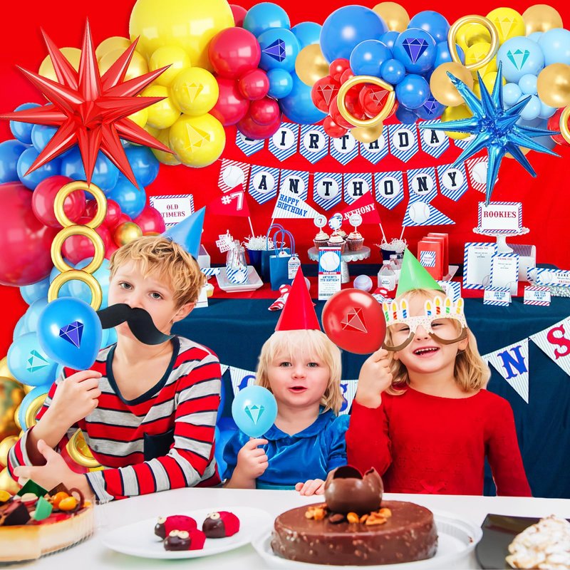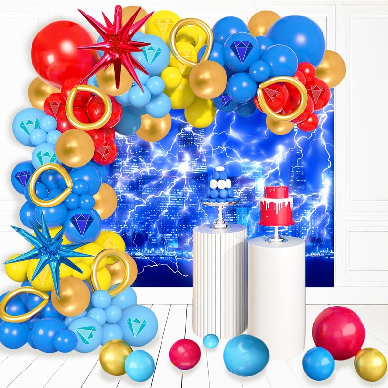 121 Pcs Red Blue Gold balloon garland Arch Kit, for Cartoon Blue Hedgeho Themed Birthday Party Decorations Boys Girls Gatherings Party Supplies