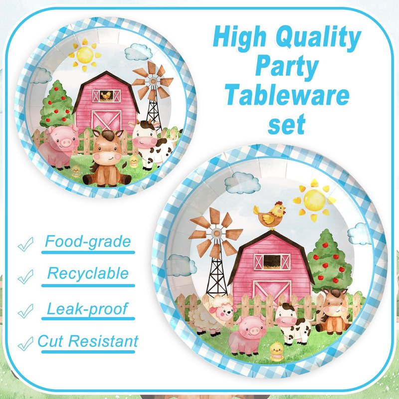 - 【Easy to Clean】These Farm plates and napkins party supplies are environmental friendly, you can throw them into trash can directly after party. You can save a lot of time to clean and enjoy party time with family and friends.