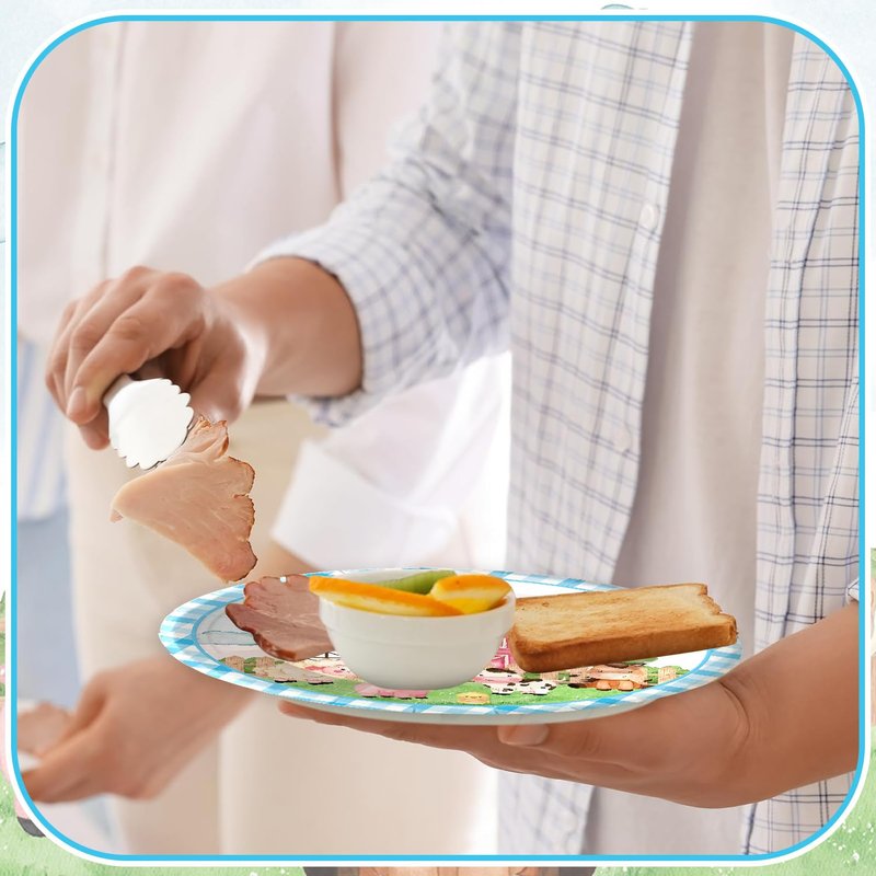 - 【Premium Quality】All of our Blue Farm tableware is made of high quality paper materials, environmentally friendly, odor free, heat resistant and durable, beautifully printed in patterns and colors, not easy to fade, can hold up well with any kinds of food.