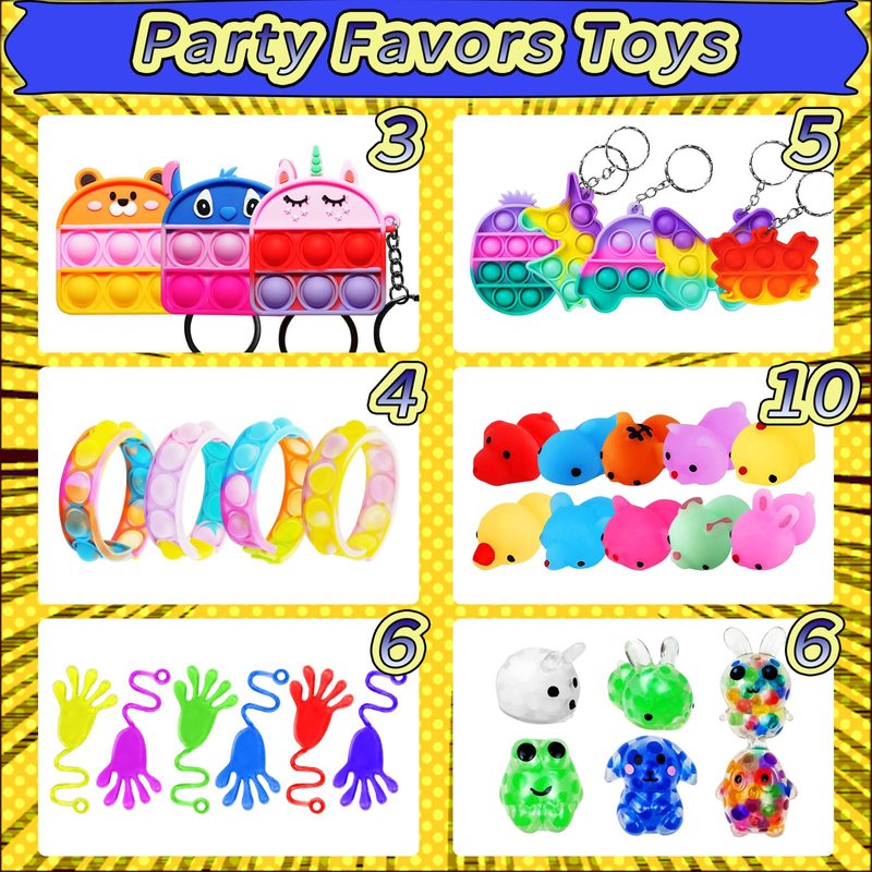 - 【Fidget Party Favors Toys】Fidget toys party favors save time and effort for parents and teachers. Very decent party gift stuffers will be excited for kids and enjoy these prizes and fidget toys for a long time. The party toys in fidget packs can keep children's hands busy and let them share their toys and happiness with each other.