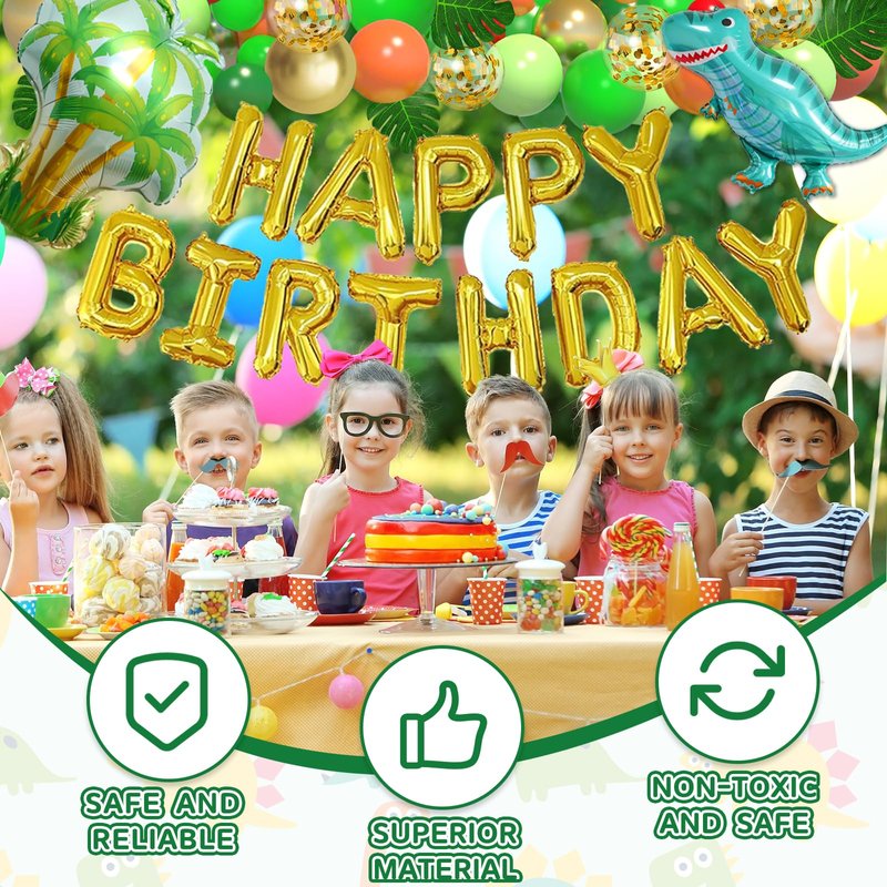 - High-Quality Dinosaur Balloons Arch Garland Kit: Dinosaur baby shower decorations was been rigorously tested and selected manually, made with natural latex, safe to be used by children. Dinosaur birthday party decorations supplies is not easy to break, have good ductility, are very durable, and have a long service life. These dinosaur balloons can be filled with air, helium. Believe that dinosaur party decorations can definitely give you a wonderful surprise.