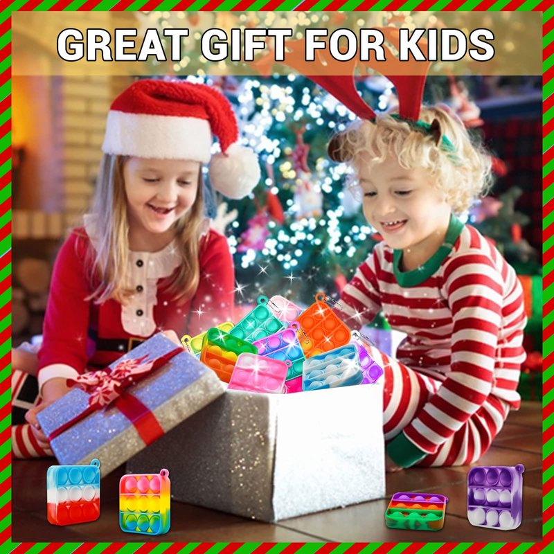 - 【GREAT CHOICE】 Fidget pop keychain will be fashionable for child Birthday, Easter basket, Halloween,Christmas stocking stuffers, Children's day novelty , office toys and party favors!