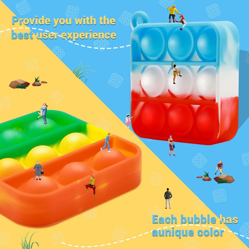 - 【FIDGET KEYCHAIN PACK】Fidget pop keychain unique colorful square pop keychain . Pop Keychain Fidget toys made of high-grade Silicone materials, it will not cause any harm to children. Fidget keychain pack are lightweight,durable,waterproof. They are perfect for kids party favors or as fidget toys for kids. When pressed the sensory fidget toys will make a POP sound. Fidget toys can bring us a lot of unexpected fun.