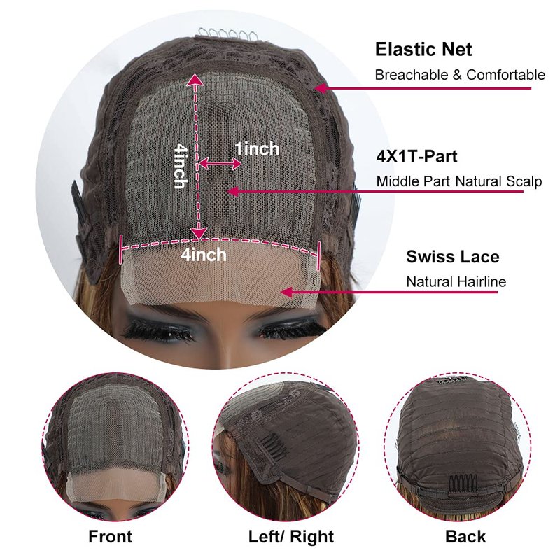 Wig Type: T -Middle Part Highlight Short Bob Wig,Only Can Make Middle Part