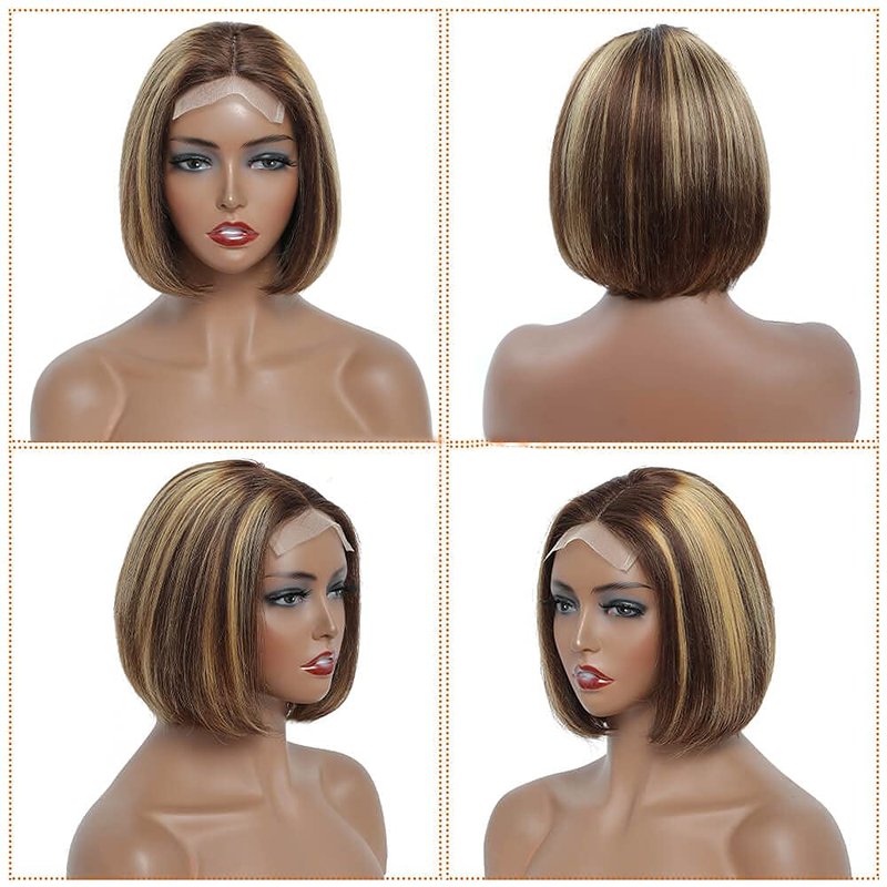 - Highlight Bob Wig Human Hair Material: 100% Unprocessed Brazilian Virgin Human Hair, Cut off from Young Donors, Very Clean and Soft, Healthy and Shinny. Can be Dyed, Bleached and Restyled According to Your Like, Looks Realistic Like Your Own Hair
