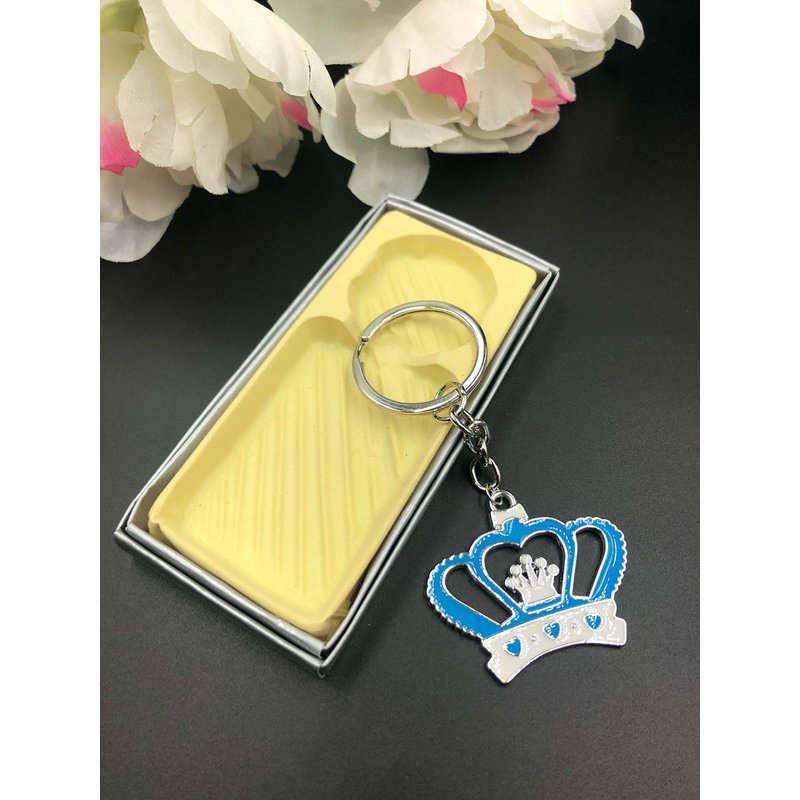 12PC Blue Baby Shower Favors Crown Table Decoration Boy Keychains