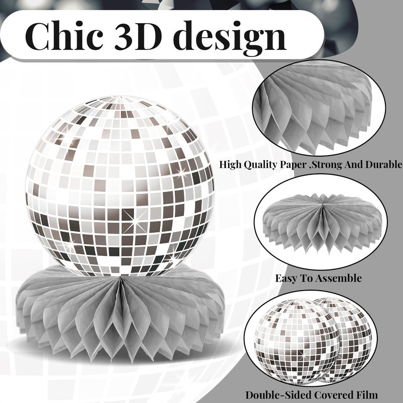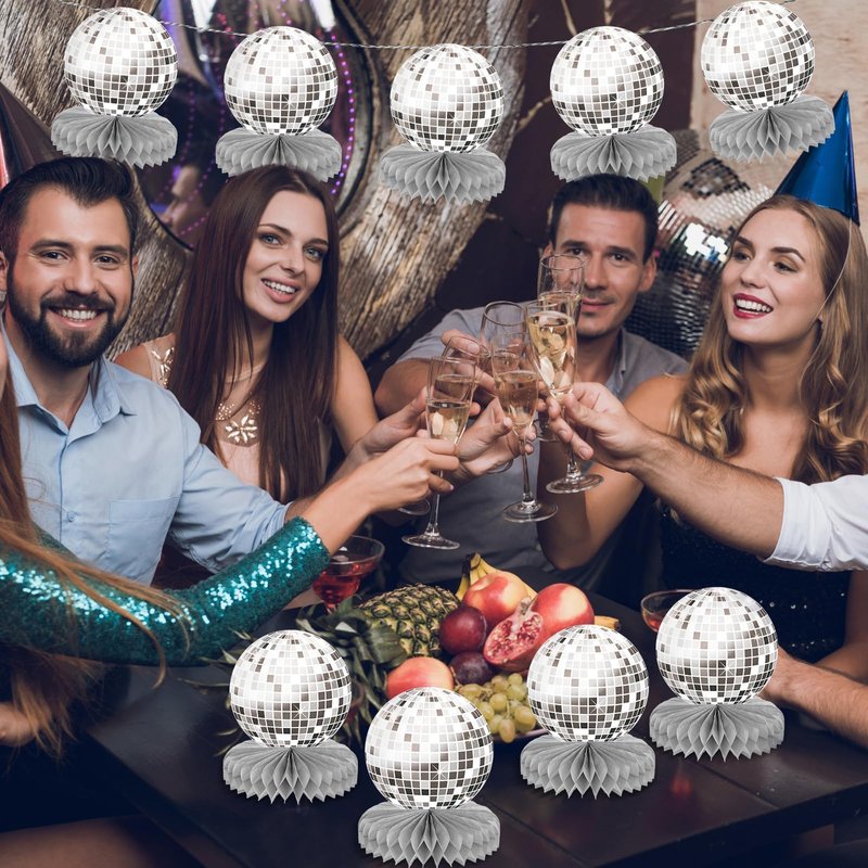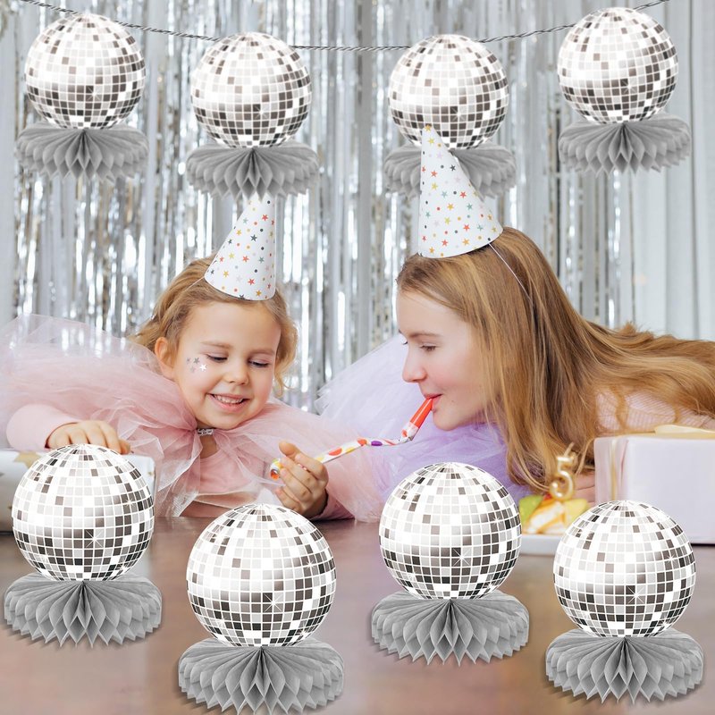 - You can get:This disco 70s party decorations includes 12pcs disco theme party table toppers .Our 70s disco honeycomb centerpieces unique design makes these party decorations an impressive addition to disco theme birthday party.