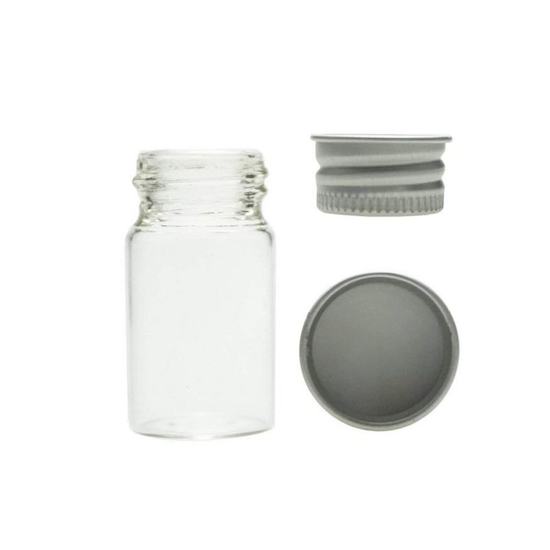 - Color:Clear+Silver as photo shown;Material:Glass body part with aluminum cap;Capacity:5 sizes for your choosing(5ml/10ml/15ml/20ml/30ml);Package including:12PCS of each order