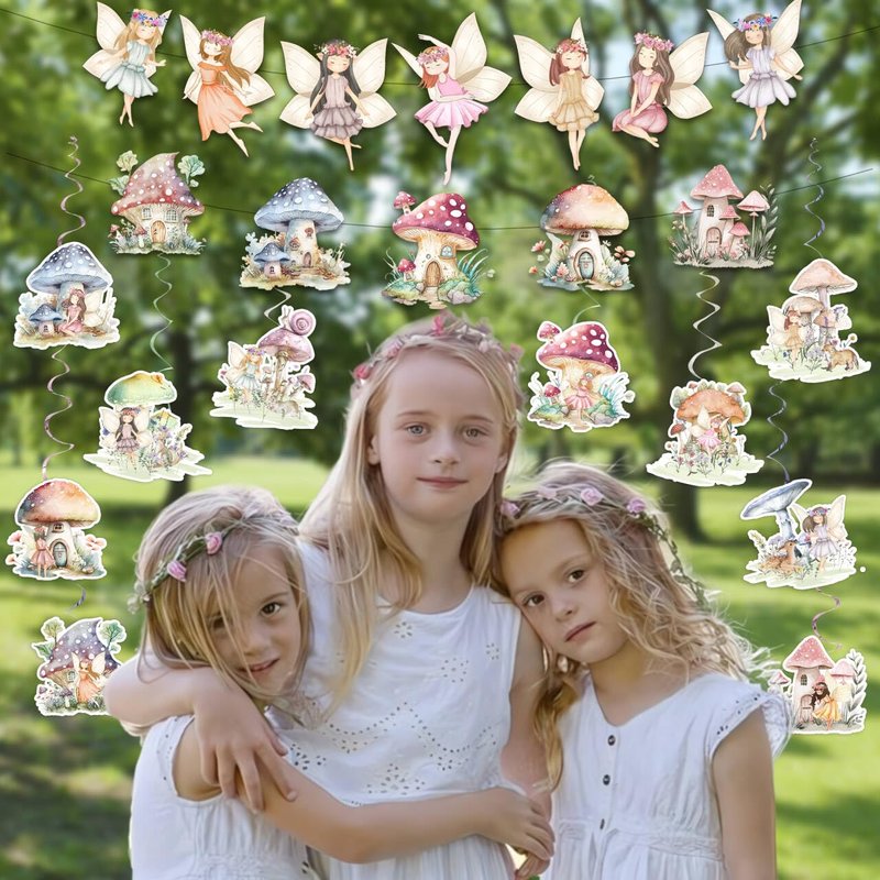 - 【Design and Feature】Fairy themed birthday decorations and birthday party decorations specially designed for girls.Combine fairies,mushrooms, mushroom houses and other fairy tale elements to create a unique fairy and elf themed birthday party.