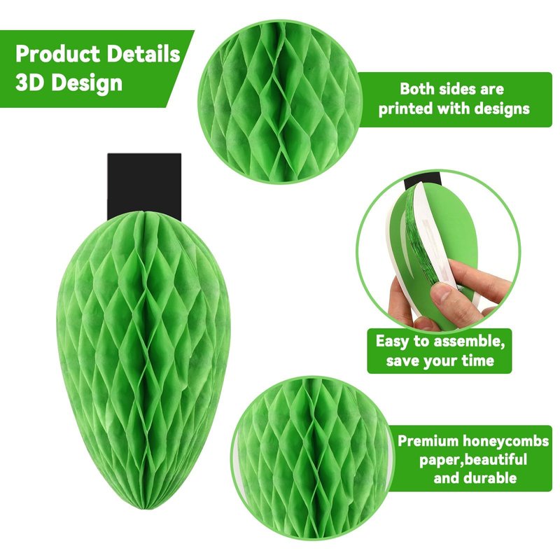 - Easy To Use:Step1:Choose a card and two honeycombs;Step 2:Peel off the sticker on the back of the honeycomb;Step 3:Paste the honeycomb into the card;Step 4:Hang it up with a rope. Finally, you will get a complete Christmas lights honeycomb ball.
