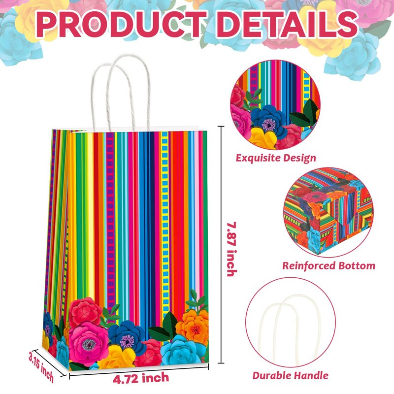 Exquisite Design:This is a Mexican-themed gift bag, includes elements such as Mexican floral and stripes.