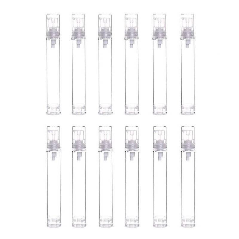 12Pcs Portable Empty Refillable Clear Plastic Airless Vacuum Pump Bottle Cosmetic Make-up Cream Lotion Sample Packing Toiletries Liquid Storage Container Vial Jars(15ml/0.5oz)