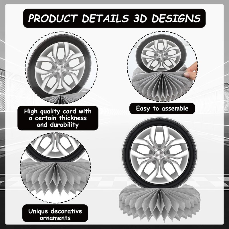 - Packing content: You will get 12pcs race car theme party honeycomb centerpieces.These wheel table toppers unique design makes these party decorations an impressive addition to race theme birthday party.