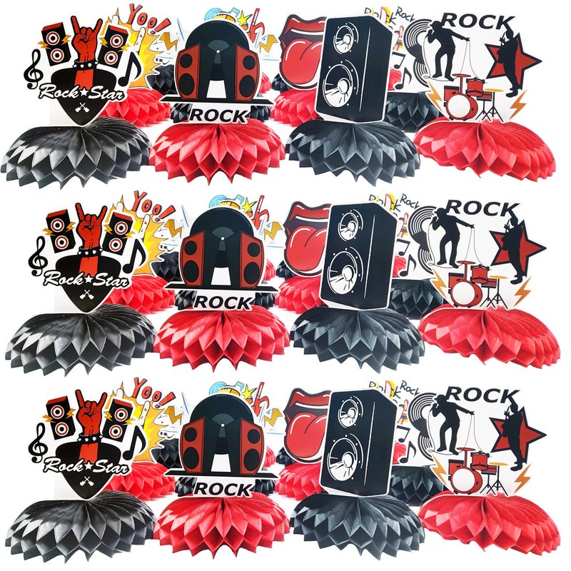 - APPLICATION SCENARIO: These rockin' honeycomb centerpieces for rock theme parties, music parties, birthday parties, happy birthdays, festivals, celebrations, baby showers, room decorations, and other indoor decoration purposes.
