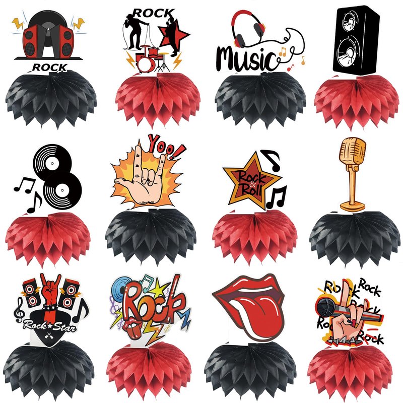 - BEEHIVE BASES WITH ROCK AND ROLL STYLE: 12 pieces of honeycomb decorations include red and black honeycomb bases, cardstock silhouettes in vivid music patterns. These decorations are music-themed party! They're so versatile and come in a variety of quantities to meet your needs.