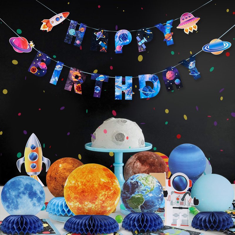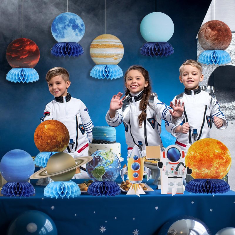 - Stellar Party Accent: Create an out-of-this-world atmosphere with our Solar System Theme Honeycomb Centerpieces. Guests of all ages will be mesmerized by the intricate details and vibrant colors, making it a memorable addition to your space-themed party.