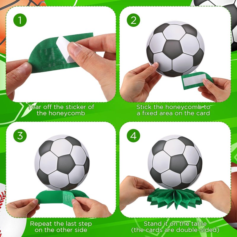 Easy to Use: There is a sticker on each sports table centerpiece that helps you fix. These sports honeycomb centerpieces are super easy to assemble and work perfectly for a surprise sports themed birthday party