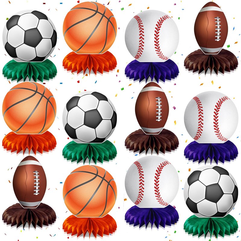 - What You Get: There are 3 pcs of baseball table honeycomb centerpieces, 3 pcs of soccer table centerpieces, 3 pcs of football honeycomb centerpieces, and 3 pcs of basketball table honeycomb centerpieces. Funny and wide variety of sports themed party decorations for all kids