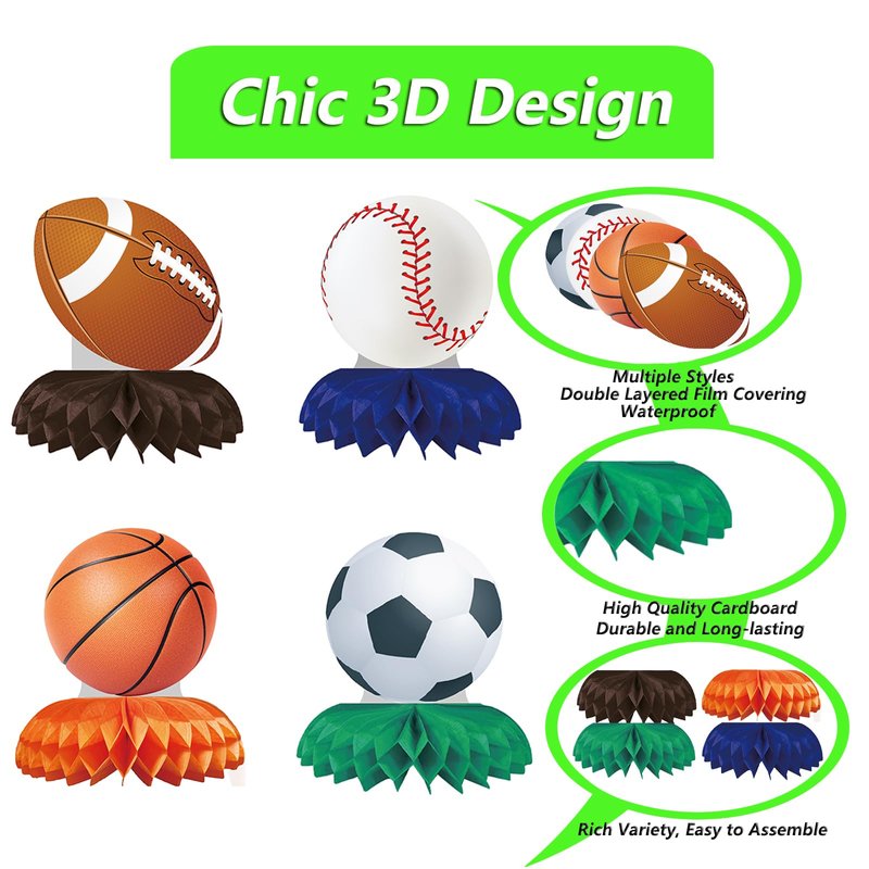 - Package Includes: There are 3 pieces of baseball table honeycomb centerpieces, 3 pieces of football table centerpieces, 3 pieces of soccer honeycomb centerpieces, and 3 pieces of basketball table honeycomb centerpieces. The sports theme party decorations are in sufficient variety and quantity, suitable for all sports decorations.