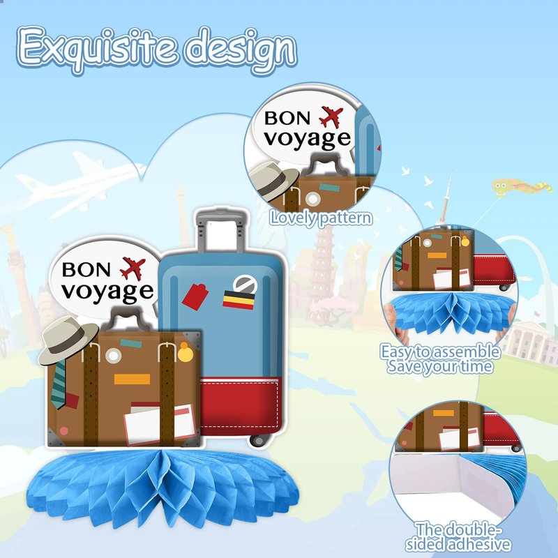 - Applicable Occasions: This honeycomb centerpiece is suitable for travel themed parties, adventure parties, farewell retirement parties and any other occasions you want to decorate.