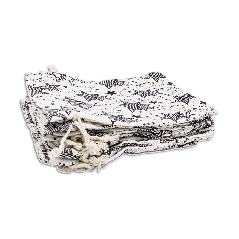 12pk - 4x6 Cotton Canvas Muslin Gift Bags w. Drawstring for Presents, Party Favors, Samples (Black Stars, Small) by TheDisplayGuys