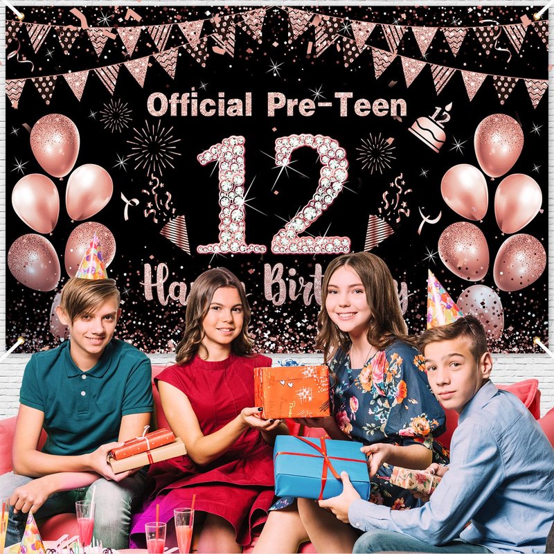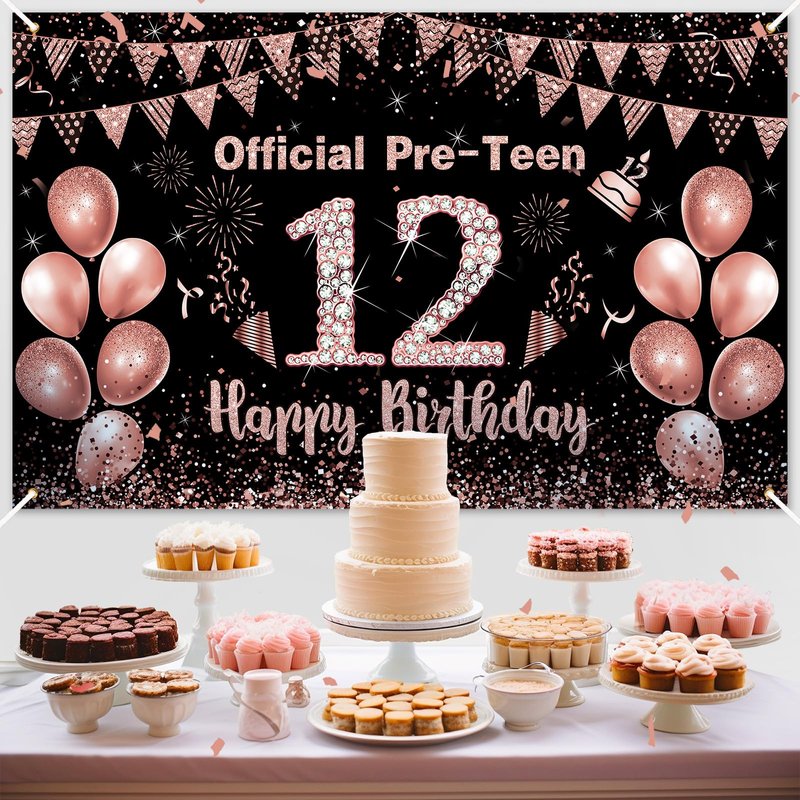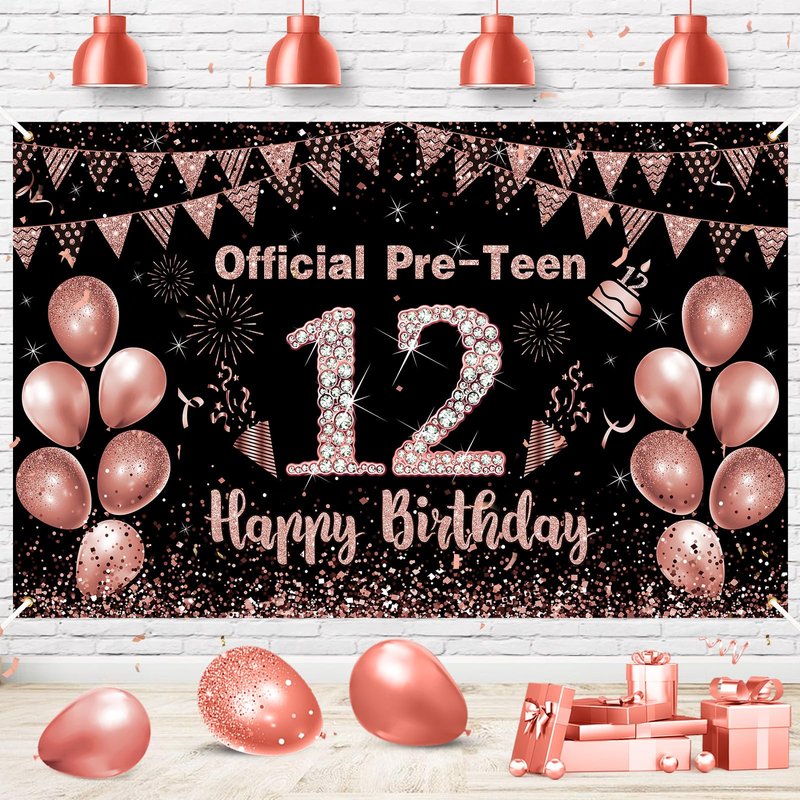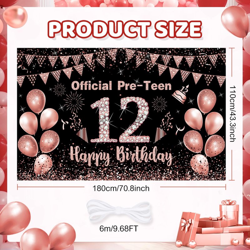 - What You Will Get: Rose gold 12th birthday party decoration measures 70.8 x 43.3 inches/ 180 x 110 cm in size. Its size and pattern are very suitable for the background of the 12th birthday theme party,making your birthday party full of vitality and fun.