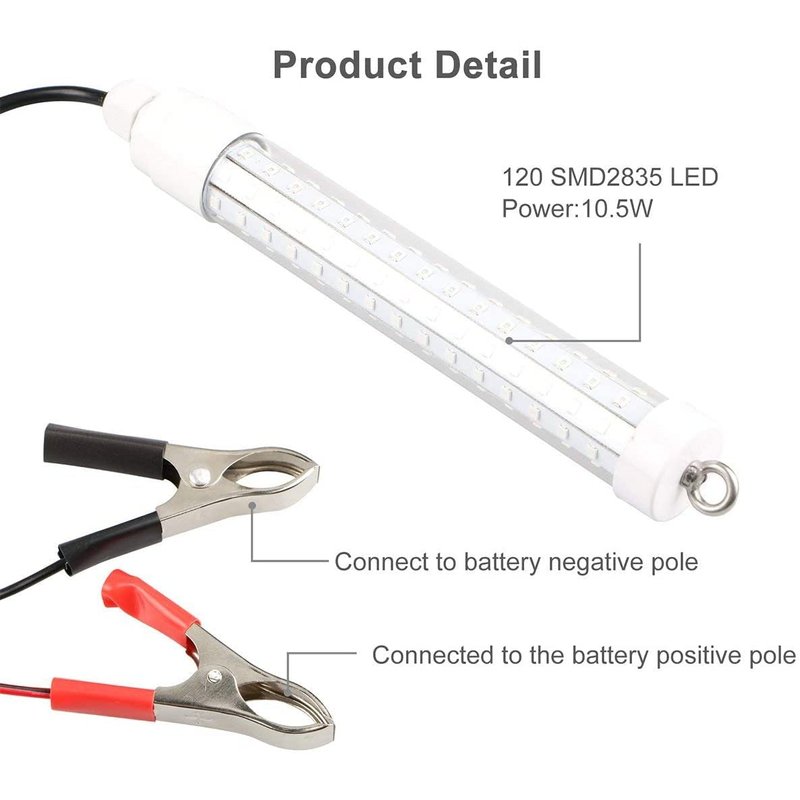 - SUPER BRIGHT: This submersible fishing light has 120 LEDs, 10.5W, 1000 lumens brightness. LEDs arrayed in an 8-sided design to provide a full 360° of light output.