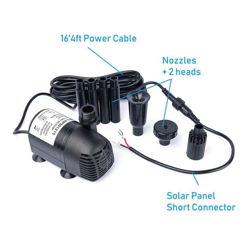 12V - 24V DC Brushless Submersible Water Pump, 410GPH, for Solar Fountain, Fish Pond, and Aquarium