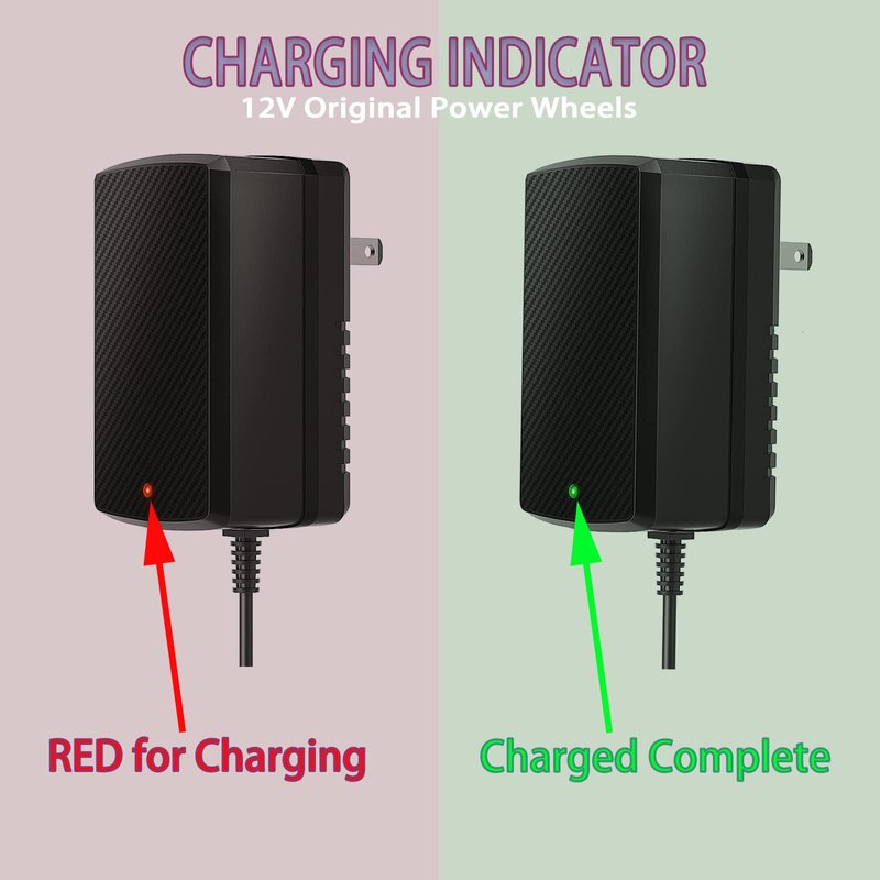 Features: The reusable fast charger can be used to charge 12V children's electric wheels, and the status two color LEDs indicate the charging stage.
