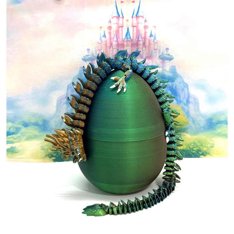 3D Printed Articulated Imperial Dragon Dragon with Dragon Egg - a mystical creature that brings a touch of fantasy to your world. Unveil the mystery of this Orange Blue Green Dragon, a captivating fusion of elegance and fantasy. This dragon reveals itself with a symphony of colors - a testament to its magical heritage. ------- Small Components Advisory: ------- Please note that this product may contain small components and might not be suitable for very young children. Given the characteristics of 3D printing, there is a potential for small components to detach if handled aggressively or dropped. Therefore, we advise against allowing younger children to interact with the dragon. Please consider that 3D printed objects might include minor imperfections such as layer lines. These are a natural and inherent aspect of the printing process. We strive to produce the highest quality items, and these imperfections contribute to the unique character of each piece. Remember the unique creation of each dragon, crafted exclusively for you. The color selections available are depicted in the provided photos. Please be aware that variations in color may occur due to discrepancies in filament production and the characteristics of the monitor or screen you are utilizing to view the listing. Additionally, the arrangement of prints using multi-colored filament rolls can influence color distribution. ------- Licensing Information: ------- Authorized Design: NOHo3D holds the official authorization for the production of this exquisite design created by FlexiFactory.