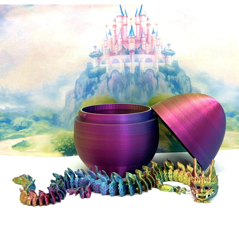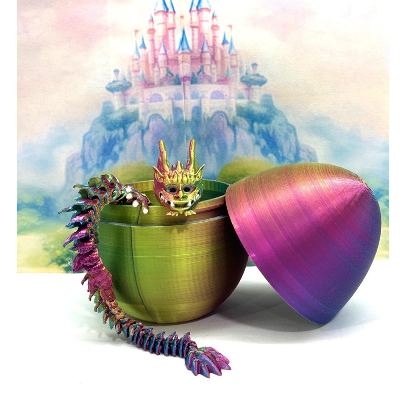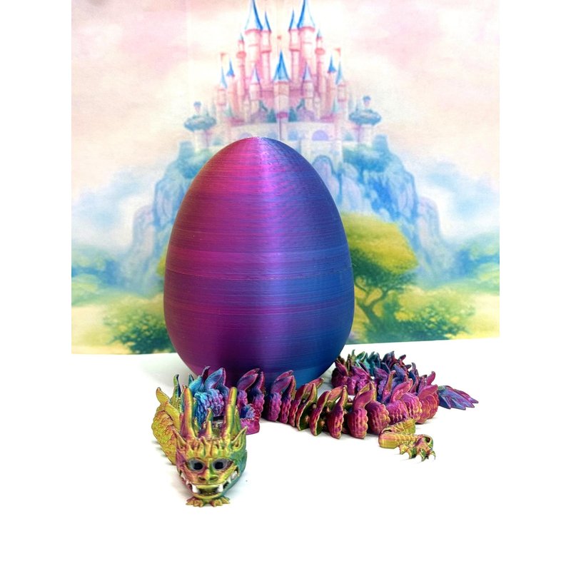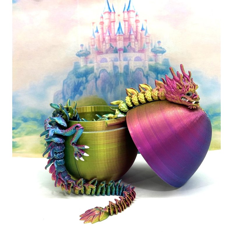3D Printed Articulated Imperial Dragon Dragon with Dragon Egg - a mystical creature that brings a touch of fantasy to your world. Unveil the mystery of this Red Yellow Blue Dragon, a captivating fusion of elegance and fantasy. This dragon reveals itself with a symphony of colors - a testament to its magical heritage. ------- Small Components Advisory: ------- Please note that this product may contain small components and might not be suitable for very young children. Given the characteristics of 3D printing, there is a potential for small components to detach if handled aggressively or dropped. Therefore, we advise against allowing younger children to interact with the dragon. Please consider that 3D printed objects might include minor imperfections such as layer lines. These are a natural and inherent aspect of the printing process. We strive to produce the highest quality items, and these imperfections contribute to the unique character of each piece. Remember the unique creation of each dragon, crafted exclusively for you. The color selections available are depicted in the provided photos. Please be aware that variations in color may occur due to discrepancies in filament production and the characteristics of the monitor or screen you are utilizing to view the listing. Additionally, the arrangement of prints using multi-colored filament rolls can influence color distribution. ------- Licensing Information: ------- Authorized Design: NOHo3D holds the official authorization for the production of this exquisite design created by FlexiFactory.