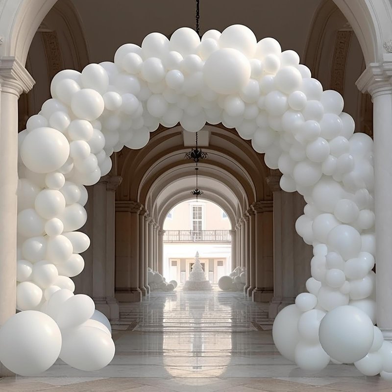 • 🀍EASY TO USE: This balloon set for arch decoration contains 130 white balloons of different sizes.We will also provide you with balloon chains and balloon dispensing for free, so you can give full play to your imagination and make balloon decorations of different shapes.After the wedding decoration balloon is filled with air through the air pump, use your whimsical ideas to get the balloon stuck on the different bayonets of the balloon chain, and you can also glue some small balloons to the large balloons with balloon glue dots, and finally form a perfect balloon garland.