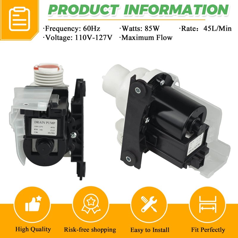 - ✔✔【365-DAYS WARRANTY】Risk-free shopping, if the 137221600 137151800 Washing Machine Drain Pump has quality problem or other reasons, we support return, replacement or refund. Customer satisfaction is our unremitting pursuit. If you are not satisfied with the product, please contact us immediately. Regular cleaning of the pump and its components, and timely replacement of worn or damaged parts, can extend the service life of the pump