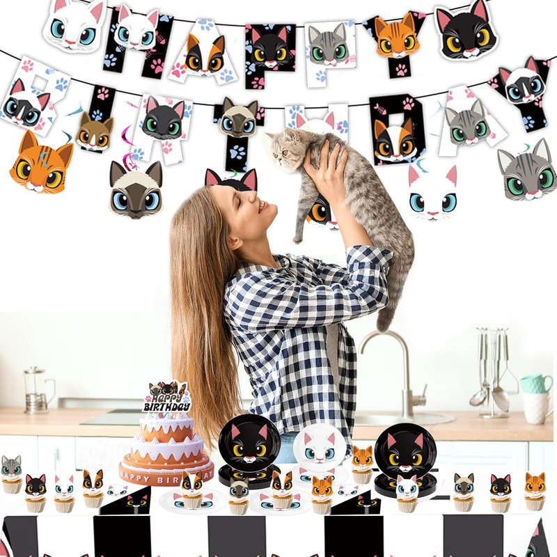 - 100% Satisfaction Customer Service -- We're sure you'll love these cat party supplies, if you feel any unsatisfied with this purchase, please contact us, we will solve the problem within 24h. HAPPY BIRTHDAY IN ADVANCE! If you like, sharing your party's photos with us!