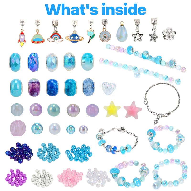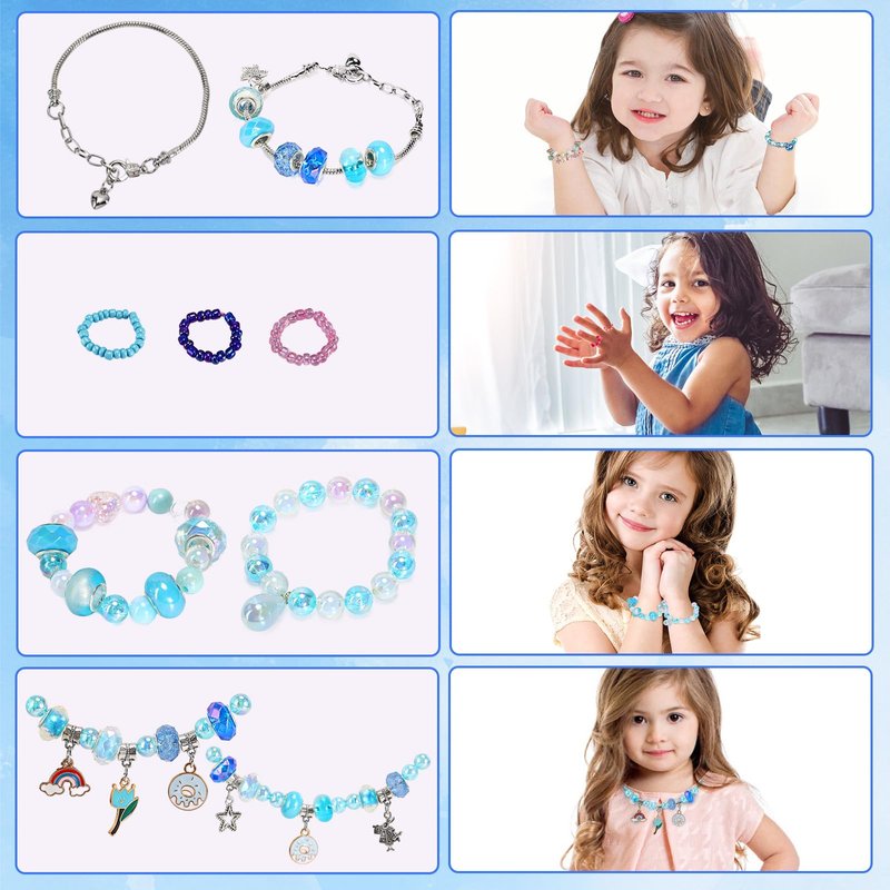 1388pcs Charm Bracelet Making Kit for Girls,Jewelry Making Kit Supplies,DIY Bead Bracelet Girls Toys,Birthday Christmas Craft Gifts Set for Kids Age 4 5 6 7 8 10 11 12 (01 Blue)