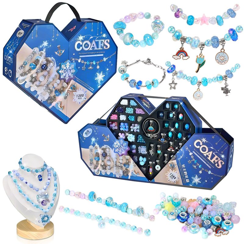 - VALUE PACK 1388-PIECE JEWELRY MAKING KIT: This exquisite toy for girls includes a variety of beads, pendants, and accessories to create various necklaces and bracelets. All components are individually organized for easy sorting and access, making it the perfect craft gift for girls aged 4 to 12.