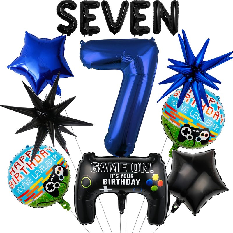 13pcs Video Game Themed Party Decorations, Number 7th Boys Birthday Party Supplies, Navy Blue Video Game Controller Mylar Foil Balloon, Video Game Party Decoration Supplies (Number 7)