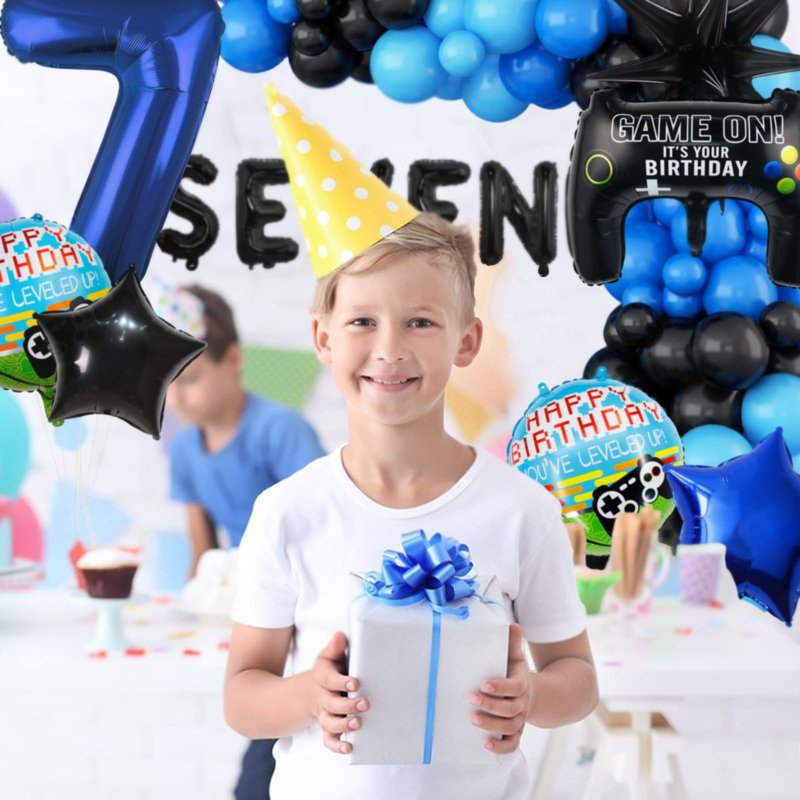 - 【Package Included】2pcs round balloon(18in), 2pcs Starburst balloon(22in), 2pcs Pentagram balloon(18in), 1pcs video game balloon(27in), 1pcs number balloon(40in), 5pcs Letter balloon(16in).