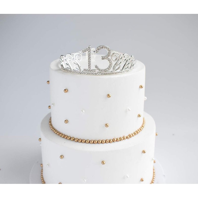 - ELEGANT 13th BIRTHDAY CROWN - 13th birthday tiara made of 100% eco-friendly alloy metal, crystals and rhinestones, nickel free and anti-allergic. Crown Size: 4.9" x 1.6". It's dainty, fancy gift for women.