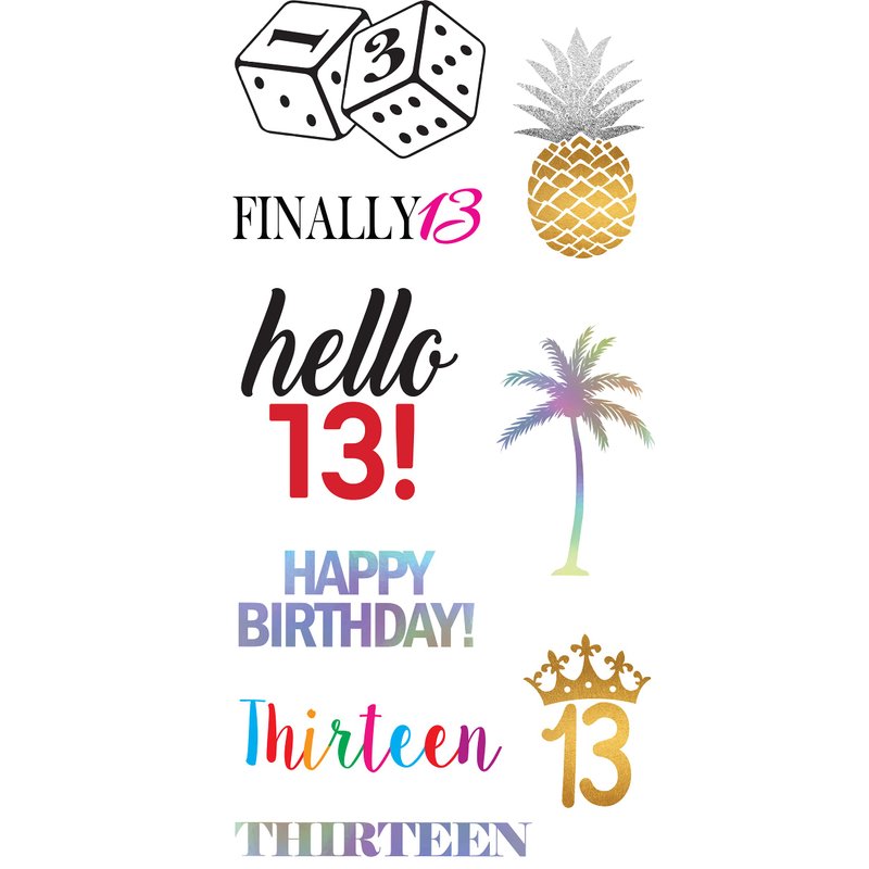 13th Birthday Temporary Tattoos (2 Pages) - Official Teenager Party Supplies, Ideas, Gifts and Decorations