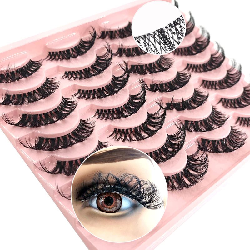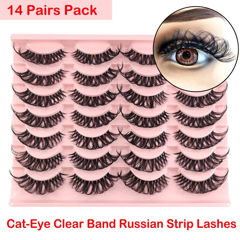russian strip lashes clear band looks like eyelash extensions D curl lash strip lashes cat eye natural look wispy faux mink fluffy 3D 15mm transparent band volume fake lashes false eyelashes 14 pairs pack