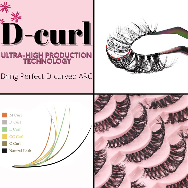 - RUSSIAN STRIP D-CURL LASHES: Russian volume strip Lashes are one of the most popular type of lashes, professional eyelash extensions look with strip lashes, giving you natural fluffy and glamorous look.