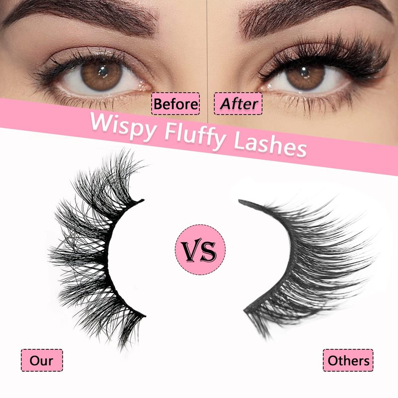 - 14 PAIRS FLUFFY EYELASHES: Wispy mink lashes fluffy make you more attractive, Suitable for all occasions like: daily wear, dating, party, festival etc.