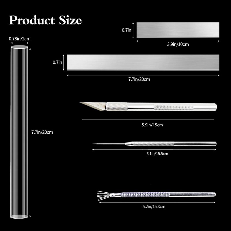 Product Details:2 acrylic transparent clay rollers,4 thickness rings, 2 long paper towel blades and 2 short knives, 4 Dotting Tool, 1 wire textures and 1 needle detail tool, 1 high-precision cutting tool.