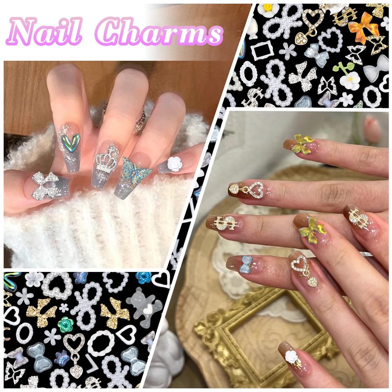 - Exquisite Design: These cute acrylic nail charms and alloy nail gems, including multi-shape butterfly, bows, star, heart, flower, cat paw, dollar, crowns etc.. You can diy your nail art randomly. Adding more 3D effect to your nail art design