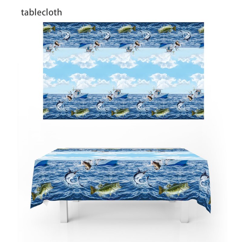 - 【Material Rest Assured】Our "Go fishing" theme set of plates, napkins, tablecloths are made of quality paper, non-toxic, tasteless, durable, pattern, color printing exquisite, not easy to fade.